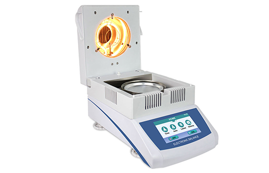 卤素水分测定仪应用了国际烘箱干燥法原理,测定结果与烘箱法水分测定具有良好的一致性,工作效率却远远高于烘箱法水分测定,一般样品只需要几分钟即可测量完毕,因此受到广大用户的青睐与好评。传统的水分测定一般是采用烘箱干燥法,一个样品的测试需要两三个甚至三四个小时,而且还需通过天平称重、人工计算,才能得出样品的水分值(含水率)。烘箱法水分测定的低效率,不能够适应高节奏的企业生产需要。幸运牌快速水分测定仪采用高效率的烘干加热器-高品质的环状卤素灯,对样品进行快速、均匀的加热,样品的水份持续不断的被烘干。整个测量过程,