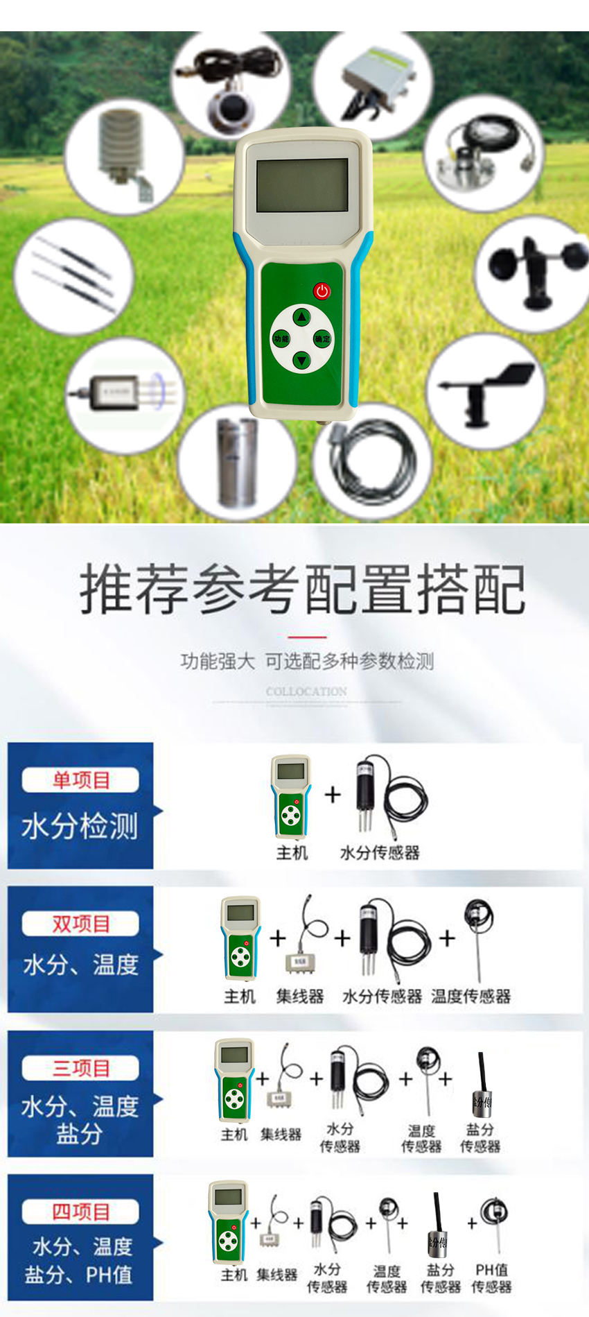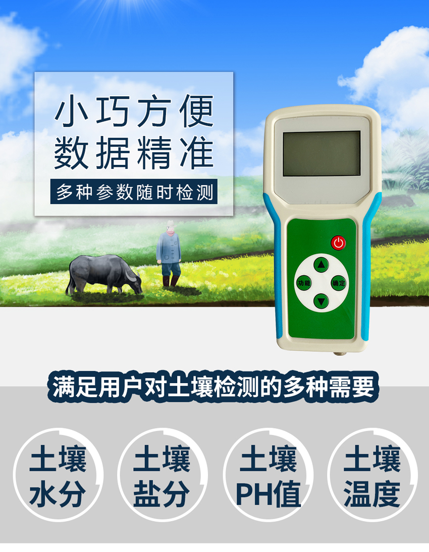 - 产品名称:便携式土壤温度水分盐分PH速测仪