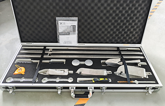 1个T型手柄、1根0.5米延长杆、5根1米延长杆、1个粘土钻头、1个壤土钻头、1个沙土钻头、1个泥炭土钻头、1把刮刀、1把不锈钢铲刀、2个扳手、1个钢卷尺、1副手套、1个毛刷、1个铝合金箱