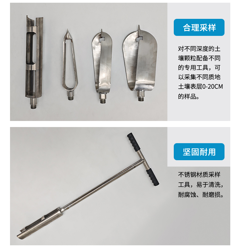在土壤采样过程中,用户会遇到不同土壤质地,比如:粘土、壤土、沙土和泥炭土。为了达到更好的采样效果,我司推出JC-803E型土壤采样器这款手动便携式土壤采样器,用户可在不同直径的土壤颗粒使用不同的专用钻头,对不同深度和区域的土壤进行合理采样和分类。客户不仅可以采集不同质地土壤表层0-20cm的样品,也可用于深层采样。整套仪器体积小,操作简单,装配及拆卸都很方便,便于用户户外携带。