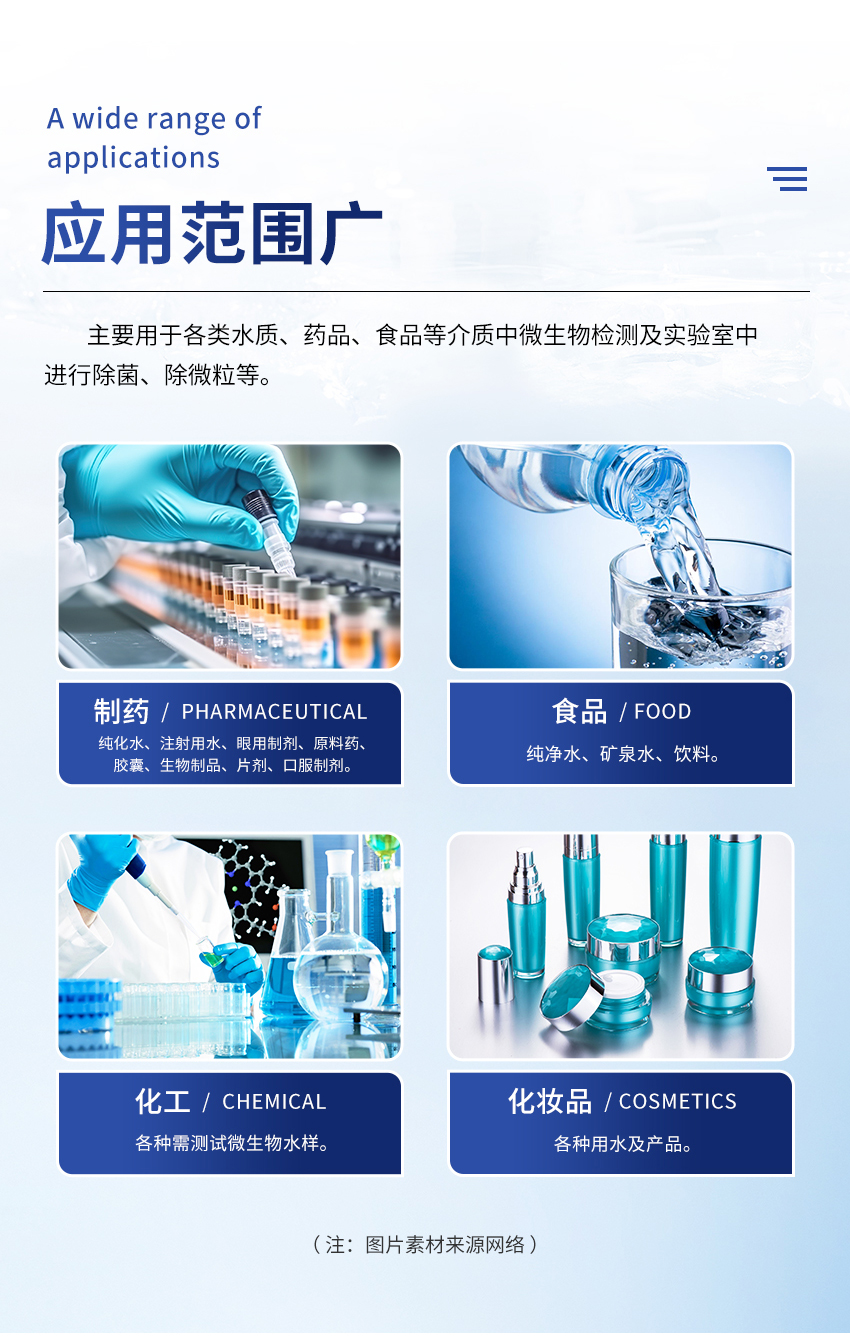 此类产品适用于水质,药品、饮料等产品的微生物检查。