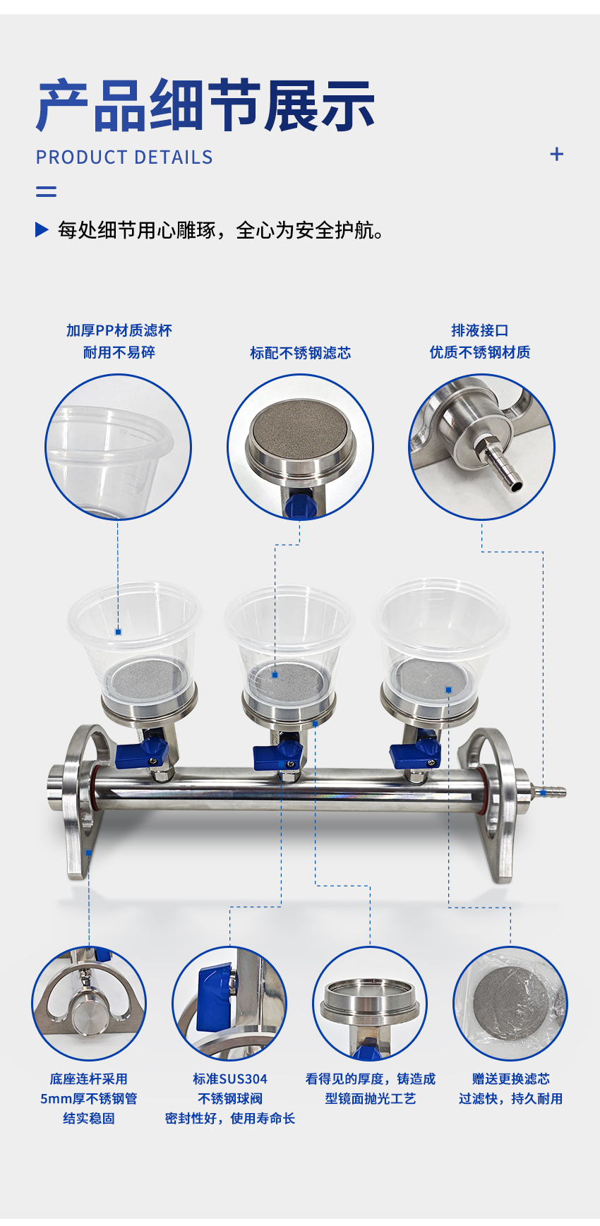 小巧的不锈钢机身,减少对操作台面积的占用。稳固的低重心设计,防止因溶液满载而翻倒。主机具备耐腐蚀、耐磨损的特性,使用寿命长。