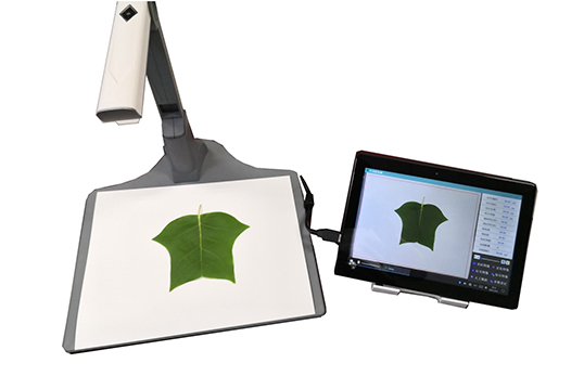 智能拍照式叶面积测量系统由图像采集仪和装入自主开发软件的平板组成,采用本公司多年积累的面积测量算法,根据叶片轮廓特征提取、图形实物转换、边缘检测等技术,能够形象并快速得到所测叶片面积、周长、虫洞数量等参数。相比传统的叶面积,具有测量更快速简便、结果更形象客观、数据多样并大大减少了人为操作带来的误差。