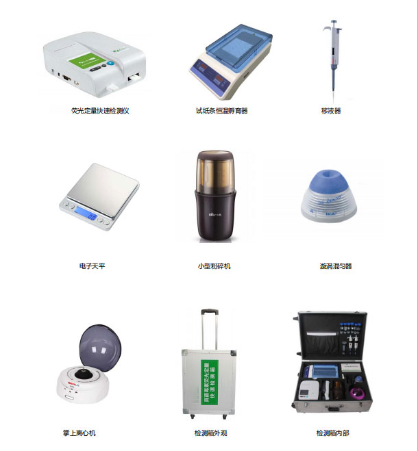 备注:JC-ZJ-100型荧光定量快速检测仪单功能,可任选检测真菌毒素、重金属、农药残留、转基因中的一类,