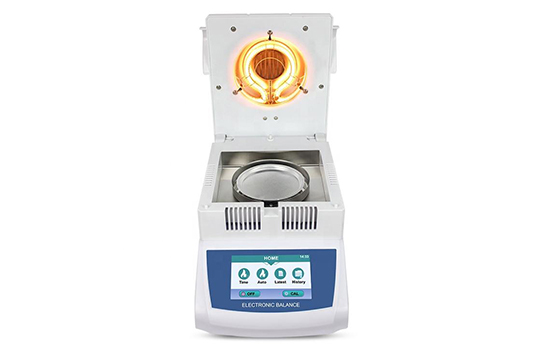 卤素水分测定仪应用了国际烘箱干燥法原理,测定结果与烘箱法水分测定具有良好的一致性,工作效率却远远高于烘箱法水分测定,一般样品只需要几分钟即可测量完毕,因此受到广大用户的青睐与好评。传统的水分测定一般是采用烘箱干燥法,一个样品的测试需要两三个甚至三四个小时,而且还需通过天平称重、人工计算,才能得出样品的水分值(含水率)。烘箱法水分测定的低效率,不能够适应高节奏的企业生产需要。幸运牌快速水分测定仪采用高效率的烘干加热器-高品质的环状卤素灯,对样品进行快速、均匀的加热,样品的水份持续不断的被烘干。整个测量过程,