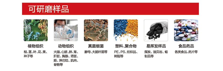 聚创研磨机系统与目前已有的其它样品制备方法相比,具有通用性广、高效灵活的优 点。该系统避免了研磨、匀浆、超声波处理等传统方法的费力、耗时、低效等诸多缺点,可以高效、快速、稳定地裂解并纯化各种类型样品的核酸与蛋白。