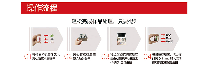 聚创研磨仪系统与目前已有的其它样品制备方法相比,具有通用性广、高效灵活的优 点。该系统避免了研磨、匀浆、超声波处理等传统方法的费力、耗时、低效等诸多缺点,可以高效、快速、稳定地裂解并纯化各种类型样品的核酸与蛋白。