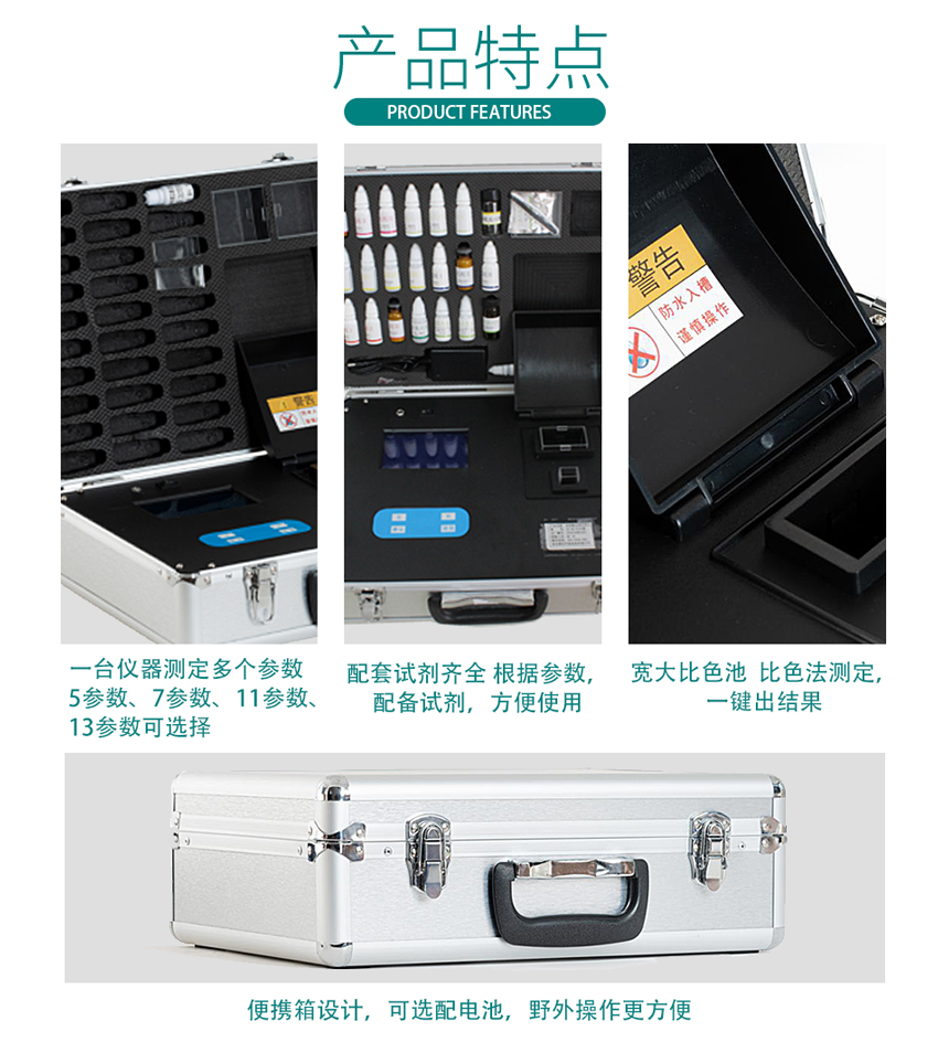 4.本仪器具有选择水质参数测量功能,通过光源的自动切换,适用于水中各个指标的快速定量测定。