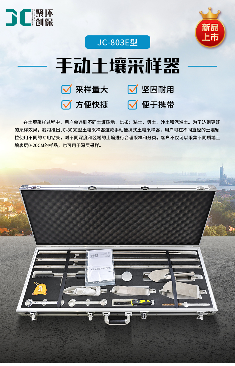在土壤采样过程中,用户会遇到不同土壤质地,比如:粘土、壤土、沙土和泥炭土。为了达到更好的采样效果,我司推出JC-803E型土壤采样器这款手动便携式土壤采样器,用户可在不同直径的土壤颗粒使用不同的专用钻头,对不同深度和区域的土壤进行合理采样和分类。客户不仅可以采集不同质地土壤表层0-20cm的样品,也可用于深层采样。整套仪器体积小,操作简单,装配及拆卸都很方便,便于用户户外携带。