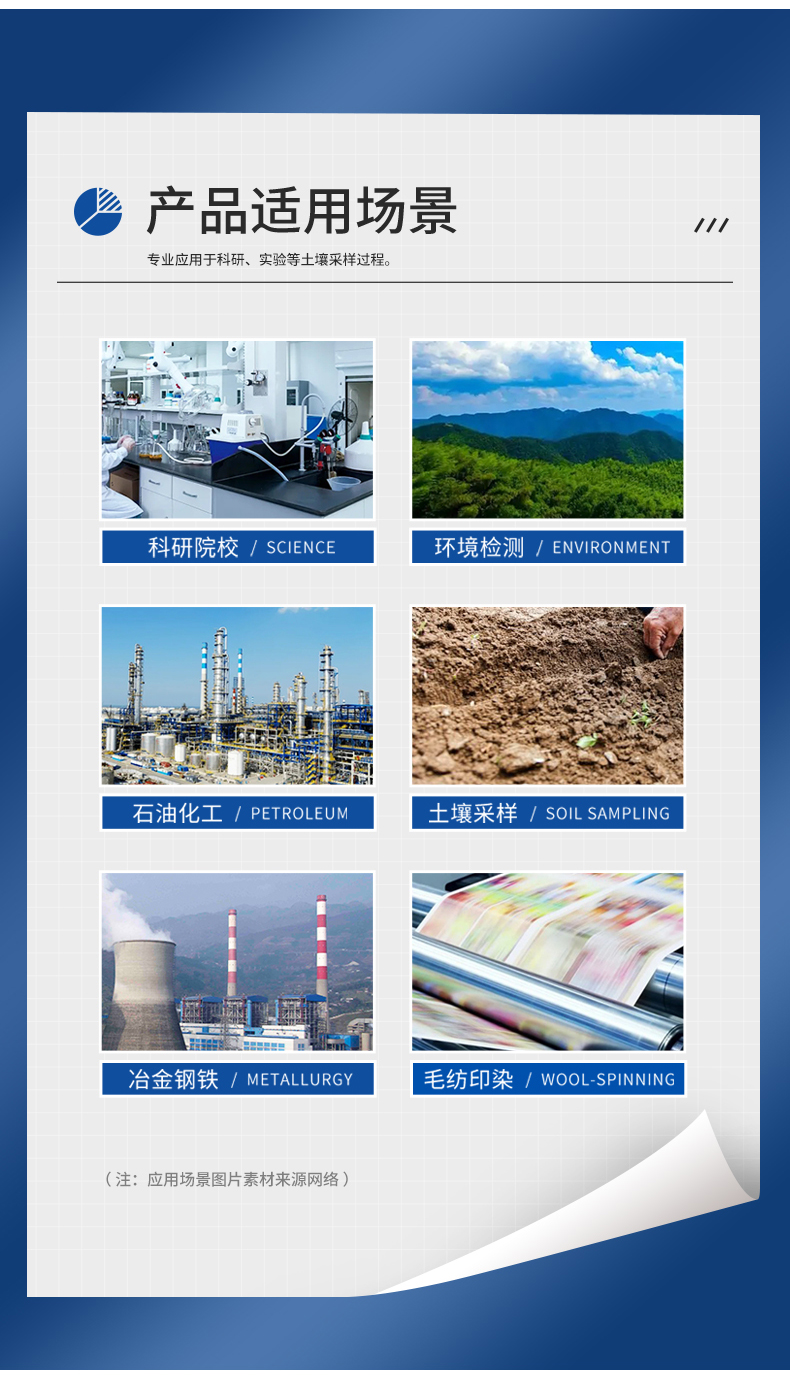 4、专业应用于科研、实验等土壤采样过程,可针对不同直径的土壤颗粒配备不同的专用工具,对1.0m内深度和区域的土壤进行合理采样和分析。