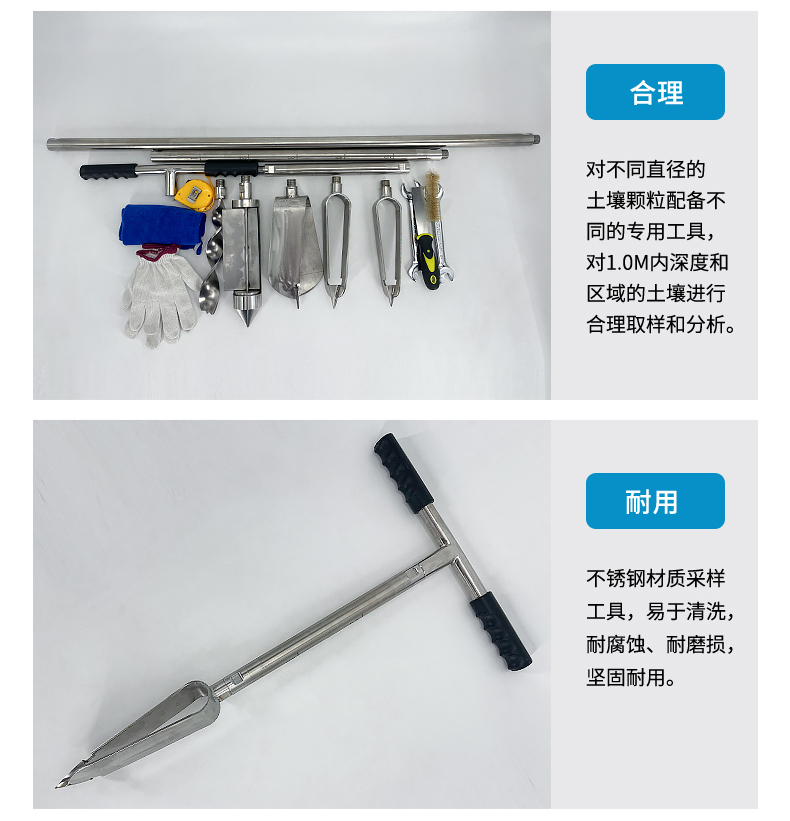 1、可在不同土壤质地采样、拆卸方便、便于户外携带。