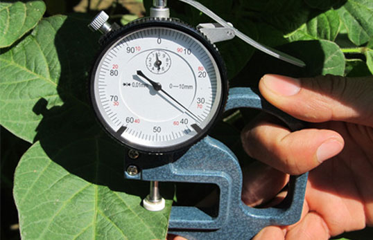 叶片是植物重要的器官,其厚度变化可以反映出植物生长状态的变化,如光合作用、水分情况、蒸腾情况、土壤温湿度情况、养分情况等。研究表明,叶片厚度变化具有周期规律性,可分为长周期和短周期(24小时)。掌握这些规律对研究植物水分状态具有重要意义,还可以通过这些规律指导农业节水灌溉。YHD-1 叶片厚度仪是一种专业测量叶片厚度的工具,可以精准的测量出叶片的厚度。